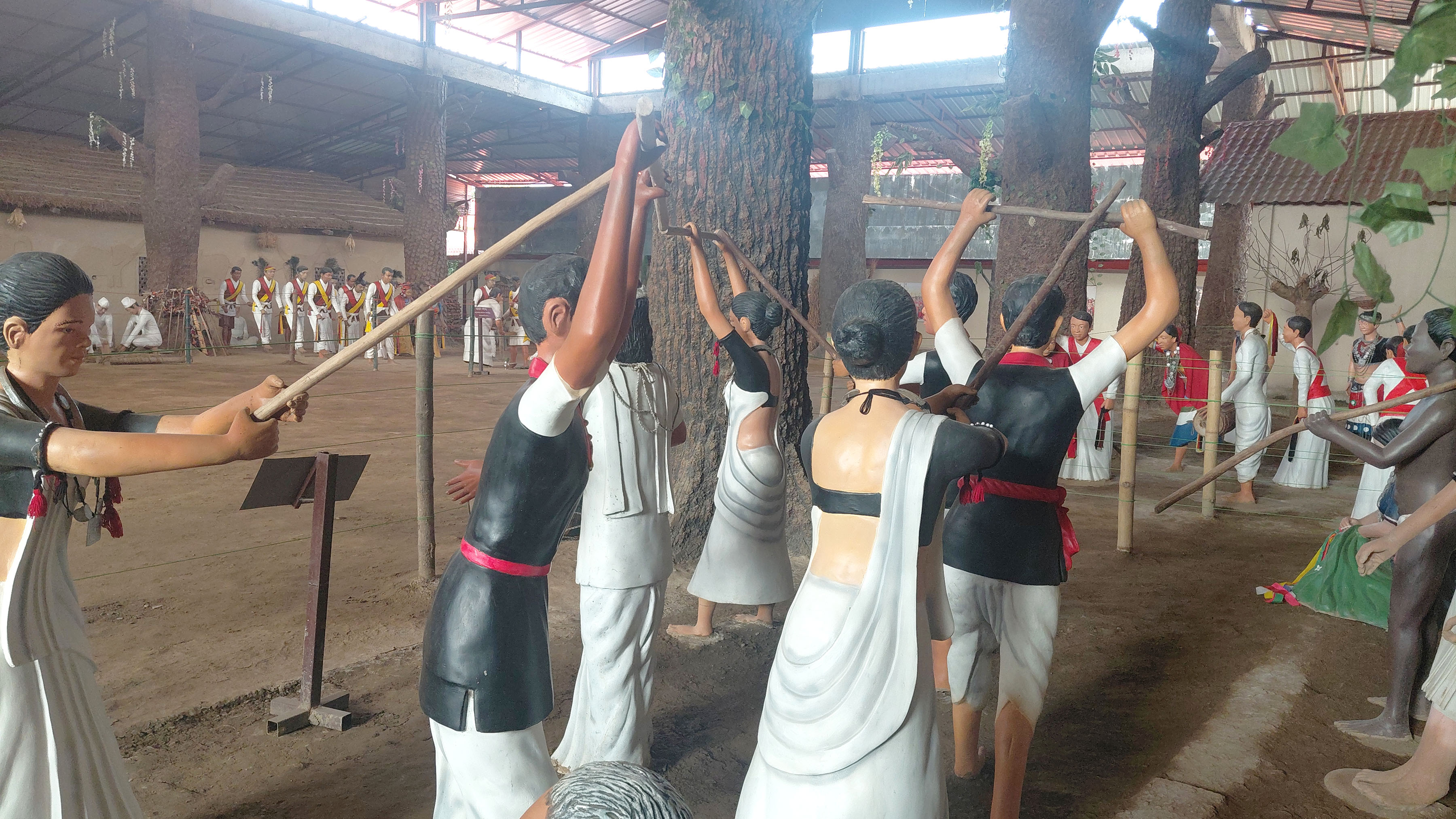 दाङको दङ्गीशरण गाउँपालिका–३ चखौरास्थित थारु सांस्कृतिक सङ्ग्रहालयमा बनाइएका थारु समुदायका पुर्खाहरुले नाच्ने नाच झल्काउने प्रतिमा।