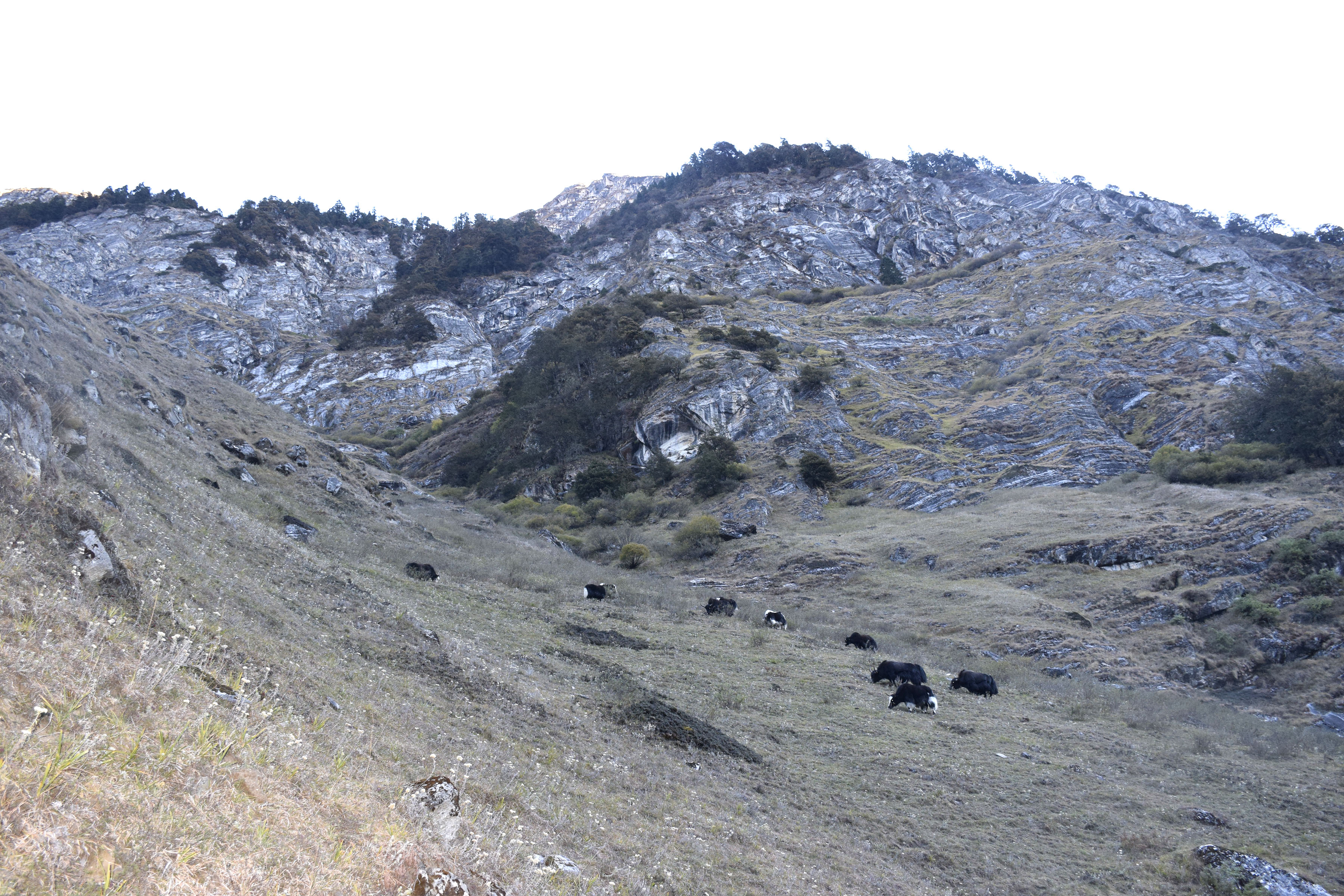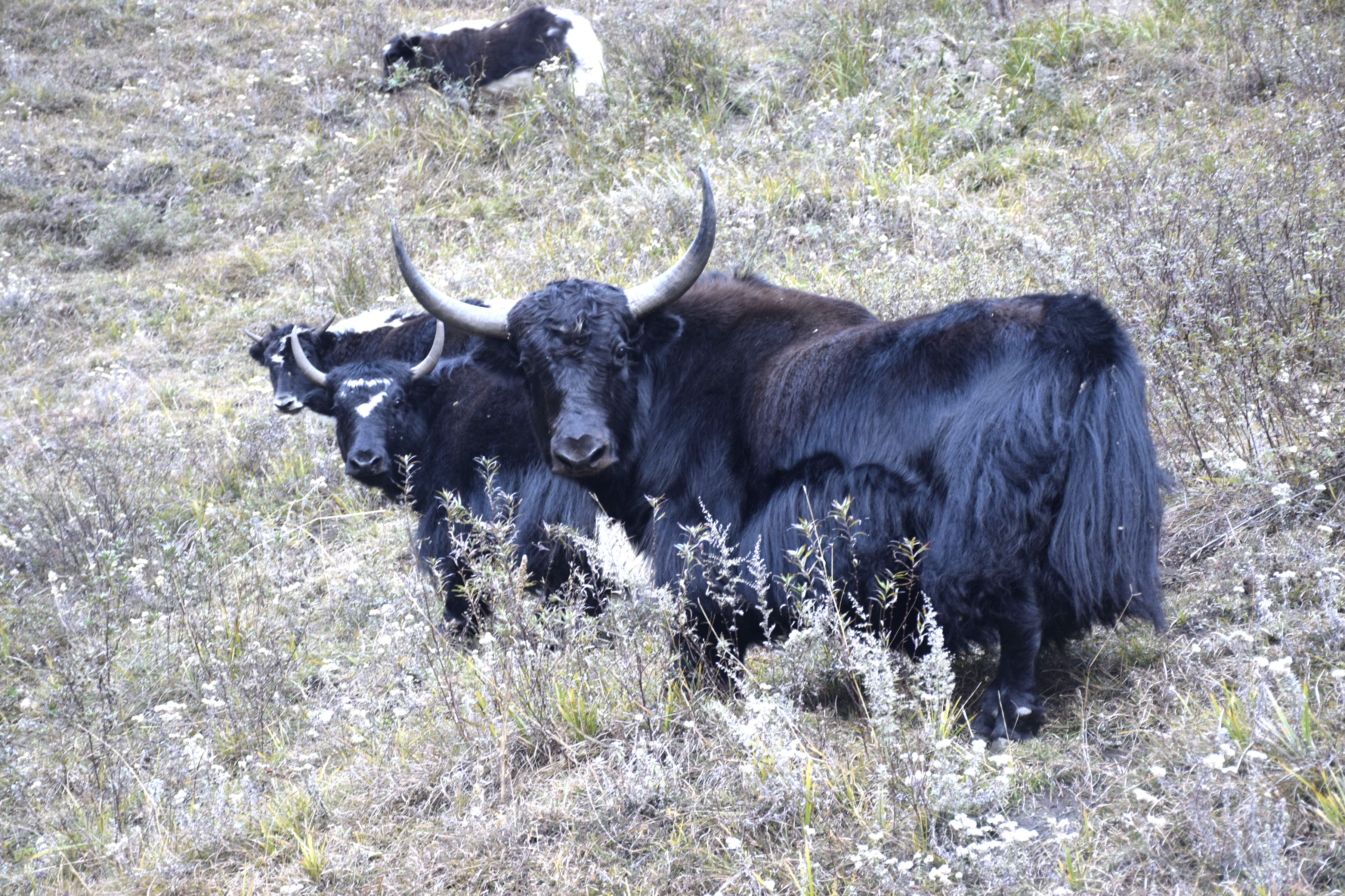 बझाङको साइपाल गाउँपालिका४स्थित साइपाल पाटनमा चर्दै गरेका चौँरीहरू। ४ हजार मिटरको उचाइमा रहेको पाटन आसपासमा हिउँदमा पनि चौँरीहरू चर्ने र खुला आकाशमा बास बस्ने गर्दछन्। यो ठाउँमा जिल्ला सदरमुकाम चैनपुरबाट ७ दिनको पैदलयात्रापछि पुगिन्छ । तस्बिर : भूमिराज पिठातोली र रासस