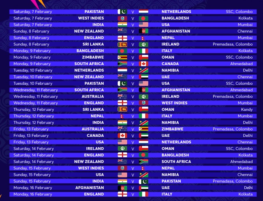 टी–२० विश्वकपको खेल तालिका सार्वजनिक, नेपालले पहिलो खेल इङ्ल्यान्डसँग खेल्ने
