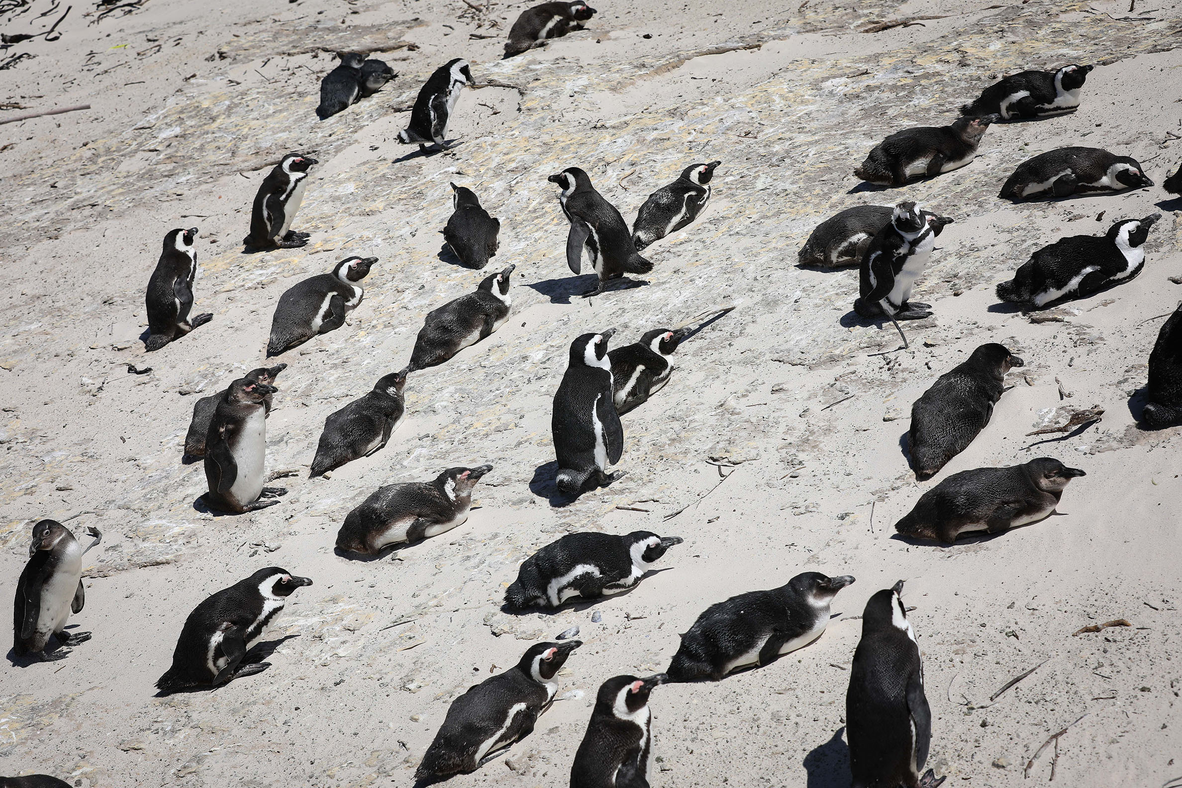 दक्षिण अफ्रिकाको समुद्री किनारमा खिचिएको पेन्गुइनका तस्बिर