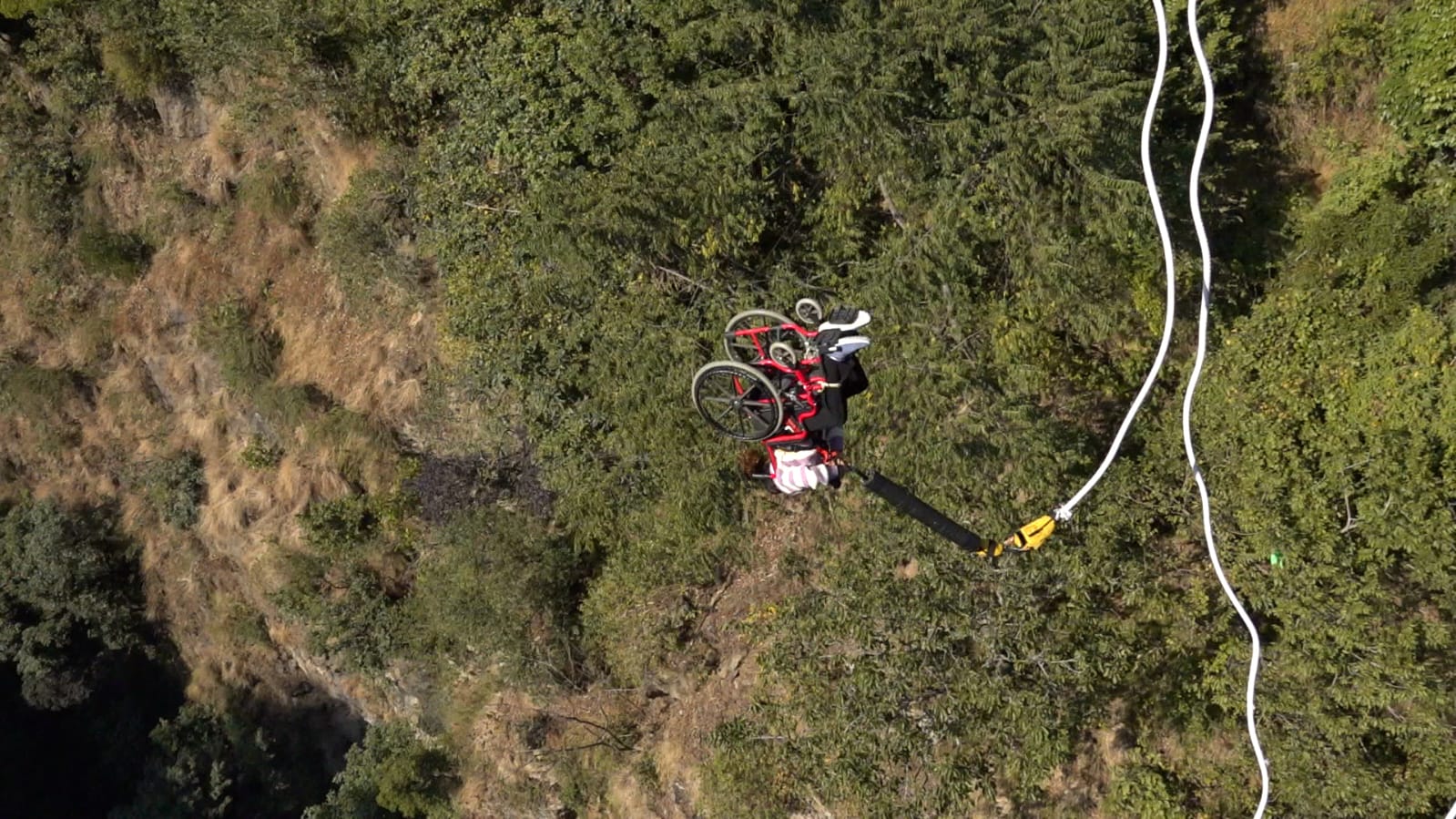नेपालमै पहिलो पटक अपाङ्गता भएकी महिलाको ऐतिहासिक ह्विलचियर बन्जी जम्प