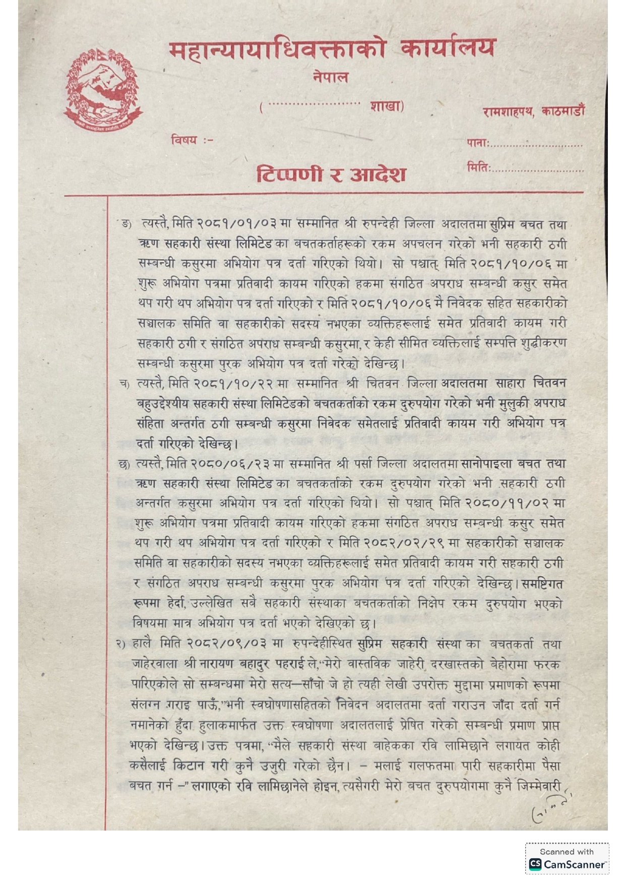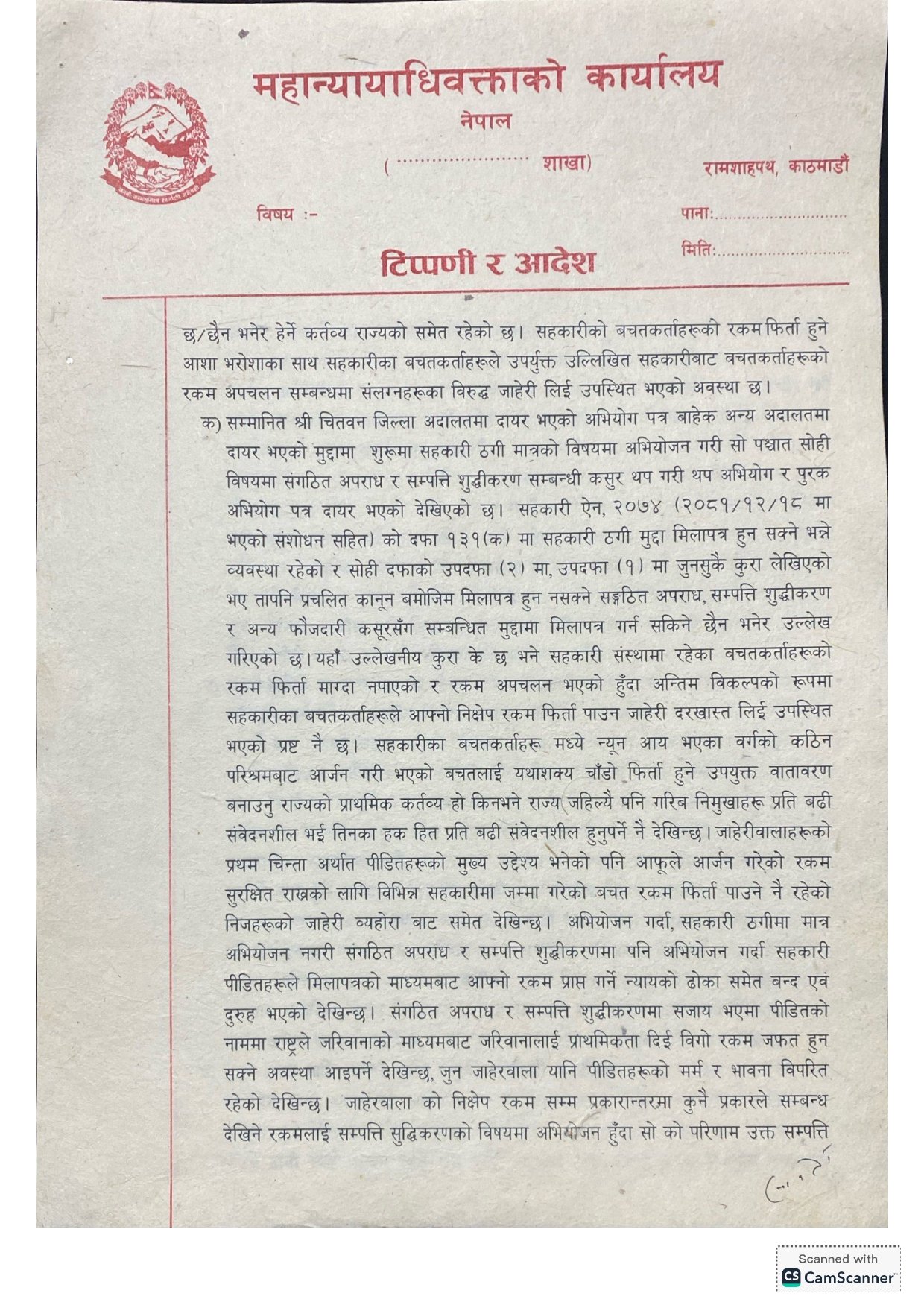 उनीमाथि सहकारी ठगीसम्बन्धी मुद्दा भने यथावत् रहने महान्यायाधिवक्ता कार्यालयले जनाएको छ ।