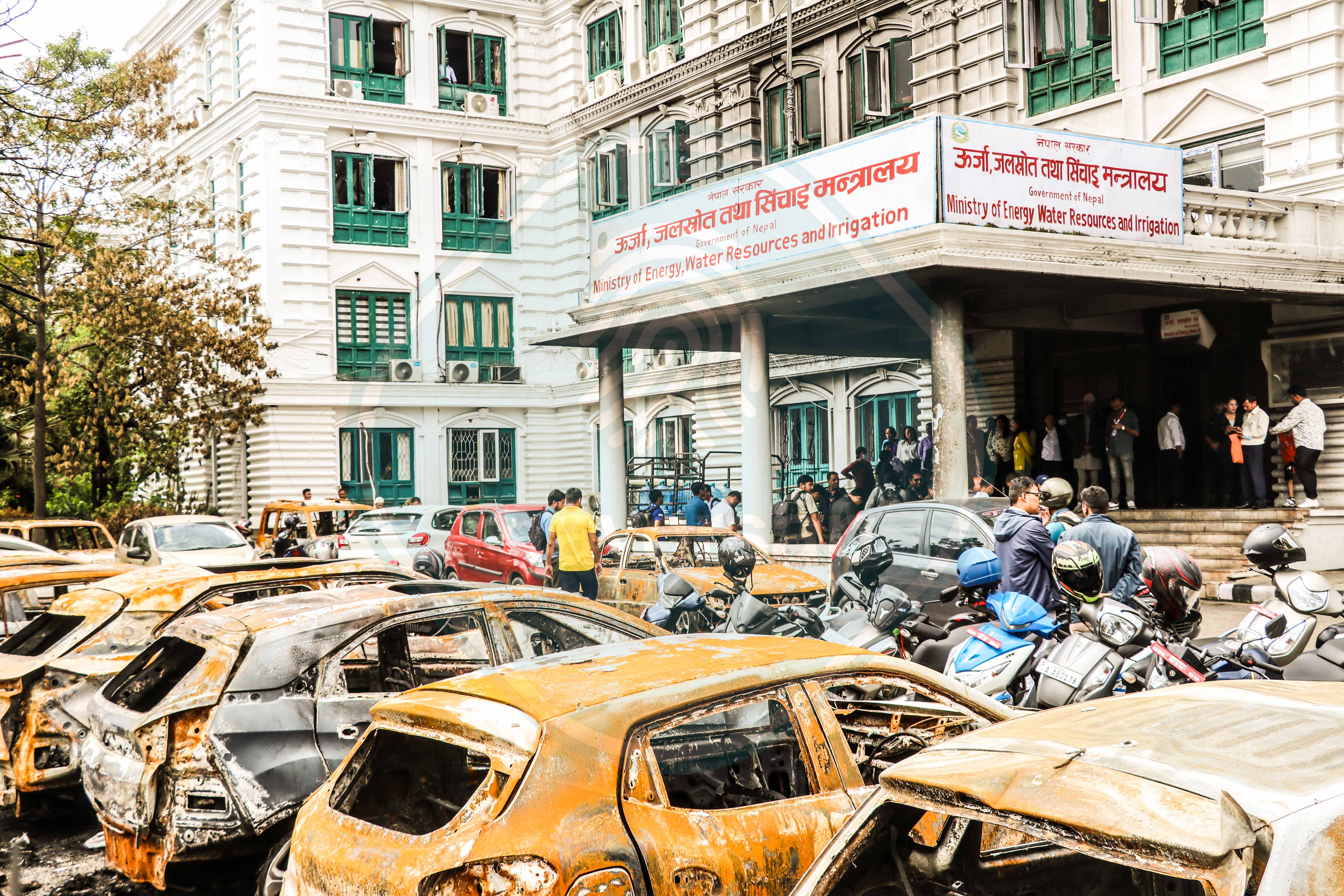 यता उर्जा, जलस्रोत तथा सिंचाई मन्त्रालयको भवनमा भने केही तोडफोड भएको देखिन्छ तर आगजनी भएको छैन । बाहिर राखिएका सवारी साधनमा भने आगजनी गरिएको छ । संस्कृति, पर्यटन तथा नागरिक उड्डयन मन्त्रालयको भवनमा खास्सै क्षति भएको छैन । यसको पनि भुइ तलाको झ्यालका सिसा फुटेका छन्, ढोका फोडिएका छन् र आगजनी नभएको कारण भवन जोगिन पुगेको देखिन्छ । तर बाहिर राखिएका सवारी साधनमा आगजनी गरिएका कारण सबै सवारीसाधन पूर्ण रुपमा जलेर नष्ट भएका छन् ।