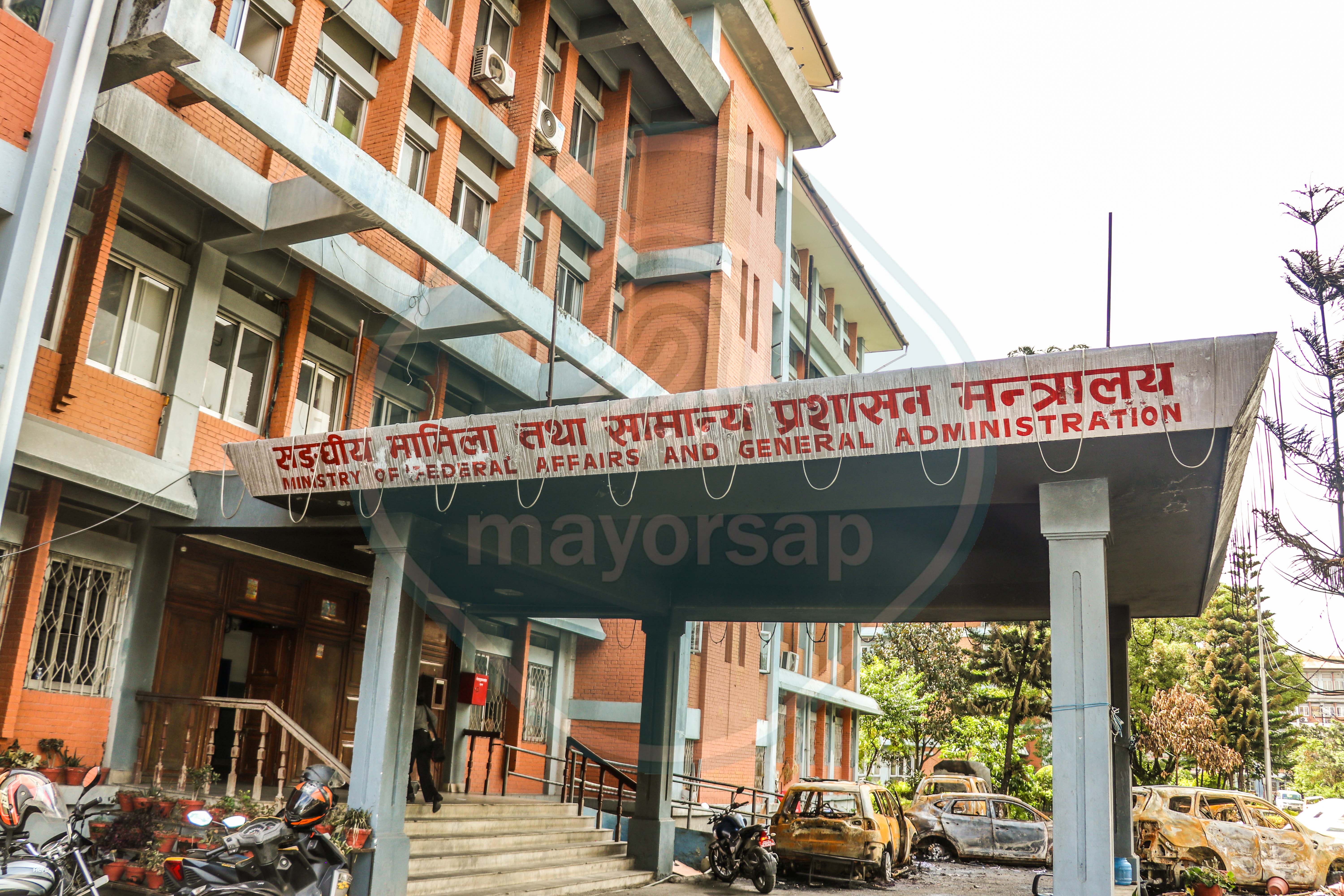 त्यसैगरी संघीय मामिला तथा सामान्य प्रशासन मान्त्रालयमा पनि आगजनीबाट आंशिक क्षति पुगेको छ । मन्त्रालयको एक छेउ आगोले क्षतिग्रस्त भएको छ । प्राङ्गणमा राखिएका सवारी साधनहरू जलेका छन् । भवनको क्षतिग्रस्त भागमा भएको विभागहरूलाई सकुशल अवस्थामा रहेको भागतर्फ सार्ने, सरसफाइ गर्ने काम भइरहेकाे छ । अहिले खातामा नाम टिपेर कर्मचारीको हाजिर गर्न सुरु गरिएको छ ।