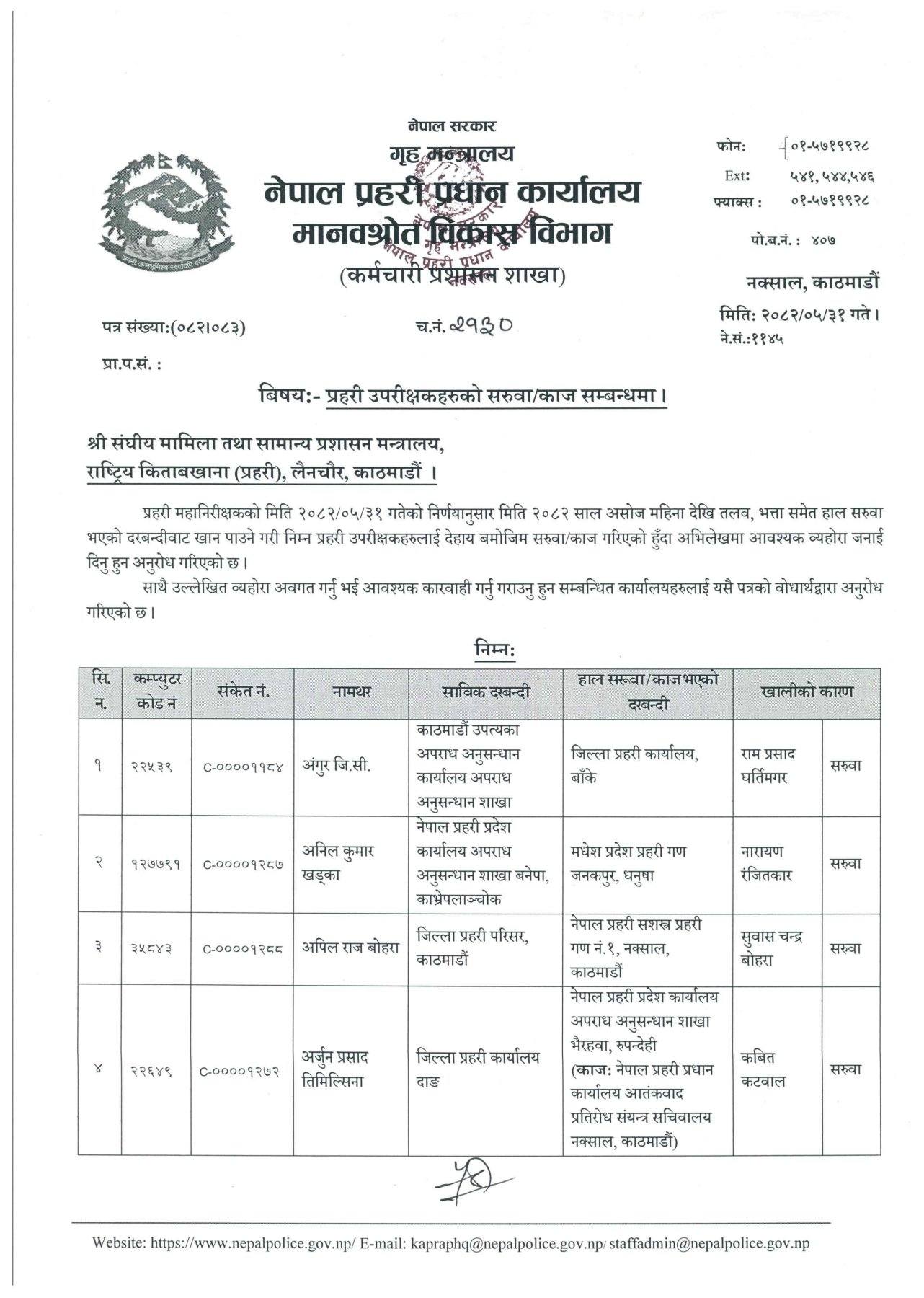 नयाँ गृहमन्त्री आएसँगै ४८ एसपीको सरुवा, दर्जन बढी जिल्लाका इन्चार्ज फेरिए