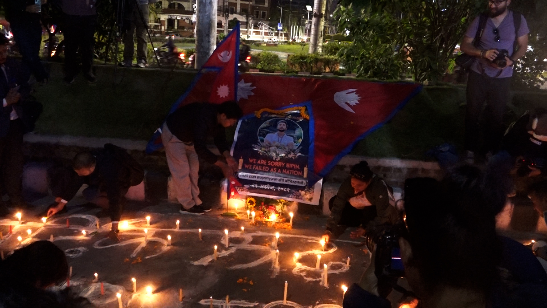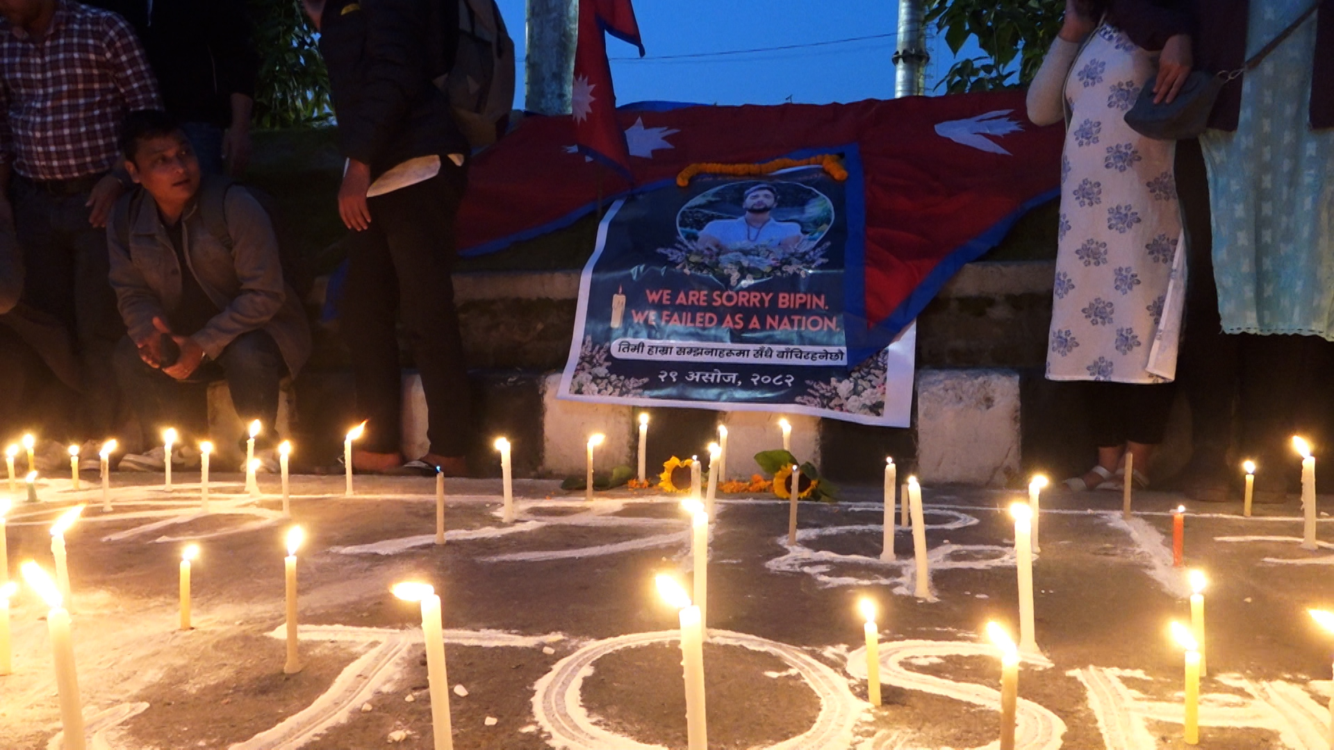काठमाडौं । जेनजी युवाहरूले इजरायलमा हमासको अपहरणमा परी ज्यान गुमाएका विपिन जोशीको सम्झनामा दीप प्रज्वलन गरेका छन् । जेनजी अभियन्ता रक्षा बम लगायतका युवाहरूले जोशीको स्मृतिमा बुधबार साँझ काठमाडौंको माइतीघर मण्डलामा दीप प्रज्वलन गरेका हुन् ।