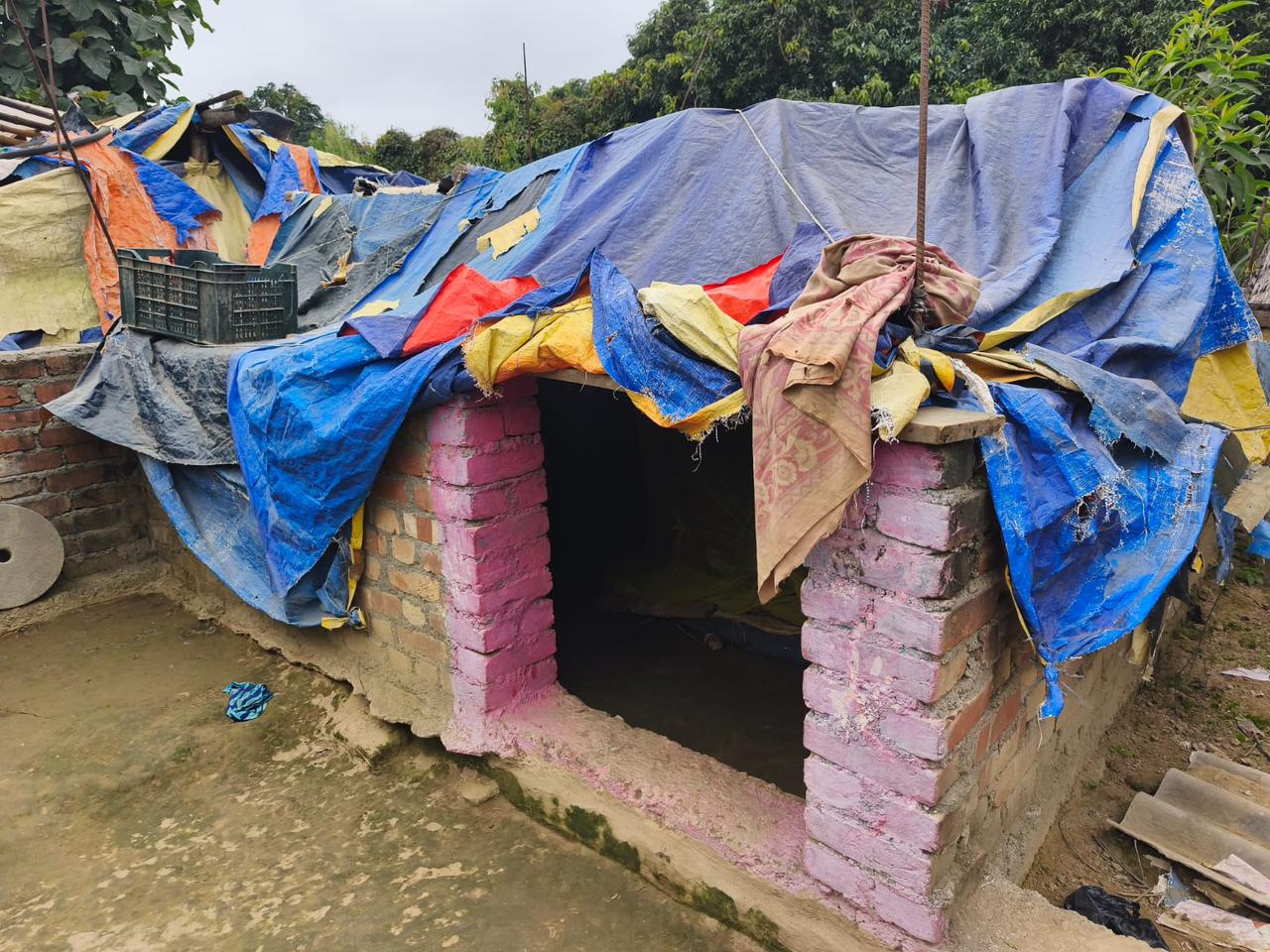मधेस प्रदेश सरकारको जनता आवास कार्यक्रमअन्तर्गत सुरु गरिएको आवास निर्माण दुई वर्ष बितिसक्दा पनि पूरा हुन नसकेपछि उनीहरू त्रिपाल र परालकै सहारामा बस्न बाध्य छन्। अधुरा संरचना र न्यानो कपडाको अभावका कारण बालबालिका, वृद्ध र महिलाको स्वास्थ्य जोखिममा परेको स्थानीय बताउँछन्।