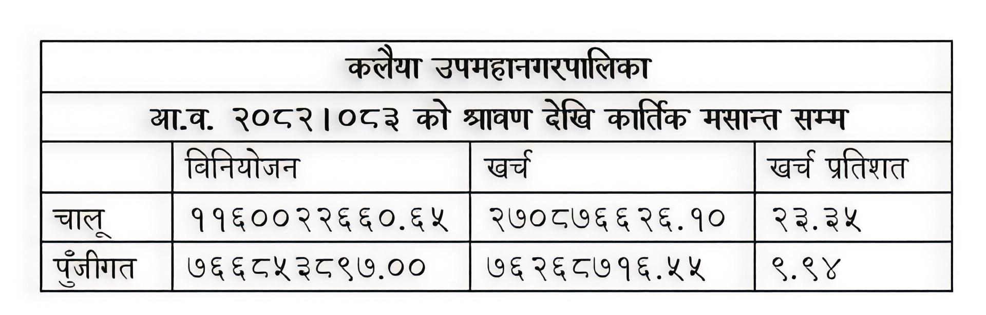 कलैयाको त्रैमासिक प्रगति: बढ्यो बजेटको आकार, खर्चमा छैन सोचेजस्तो सुधार