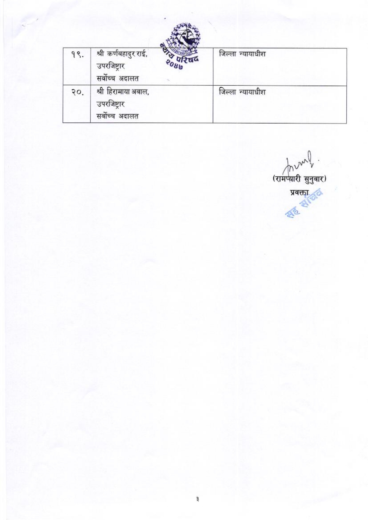 महान्यायाधिवक्ता कार्यालय अन्तर्गतका उपन्यायाधिवक्ताहरू गोपालबहादुर भट्टराई, बाबुराम भट्टराई र टेकराज भुसाल पनि न्यायाधीश नियुक्तिका लागि सिफारिस भएका छन् । यस्तै, इजलास अधिकृत गोकुल पन्त तथा रजिस्ट्रारहरू विरेन्द्रप्रकाश खड्का र महेन्द्रप्रसाद पौड्याल पनि नयाँ जिल्ला न्यायाधीशको सूचीमा अटाएका छन् ।