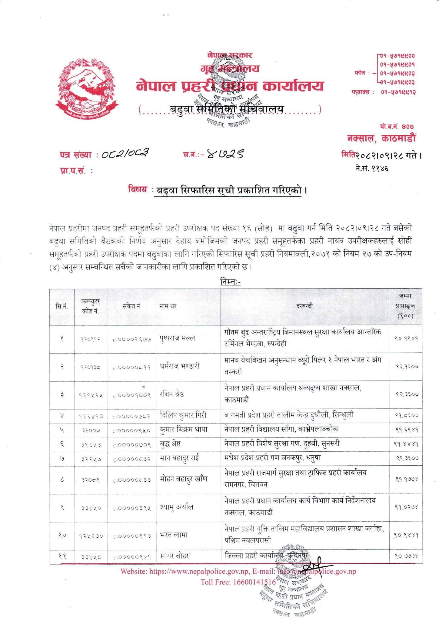 नेपाल प्रहरीका १६ जना डीएसपी एसपीमा बढुवा सिफारिस