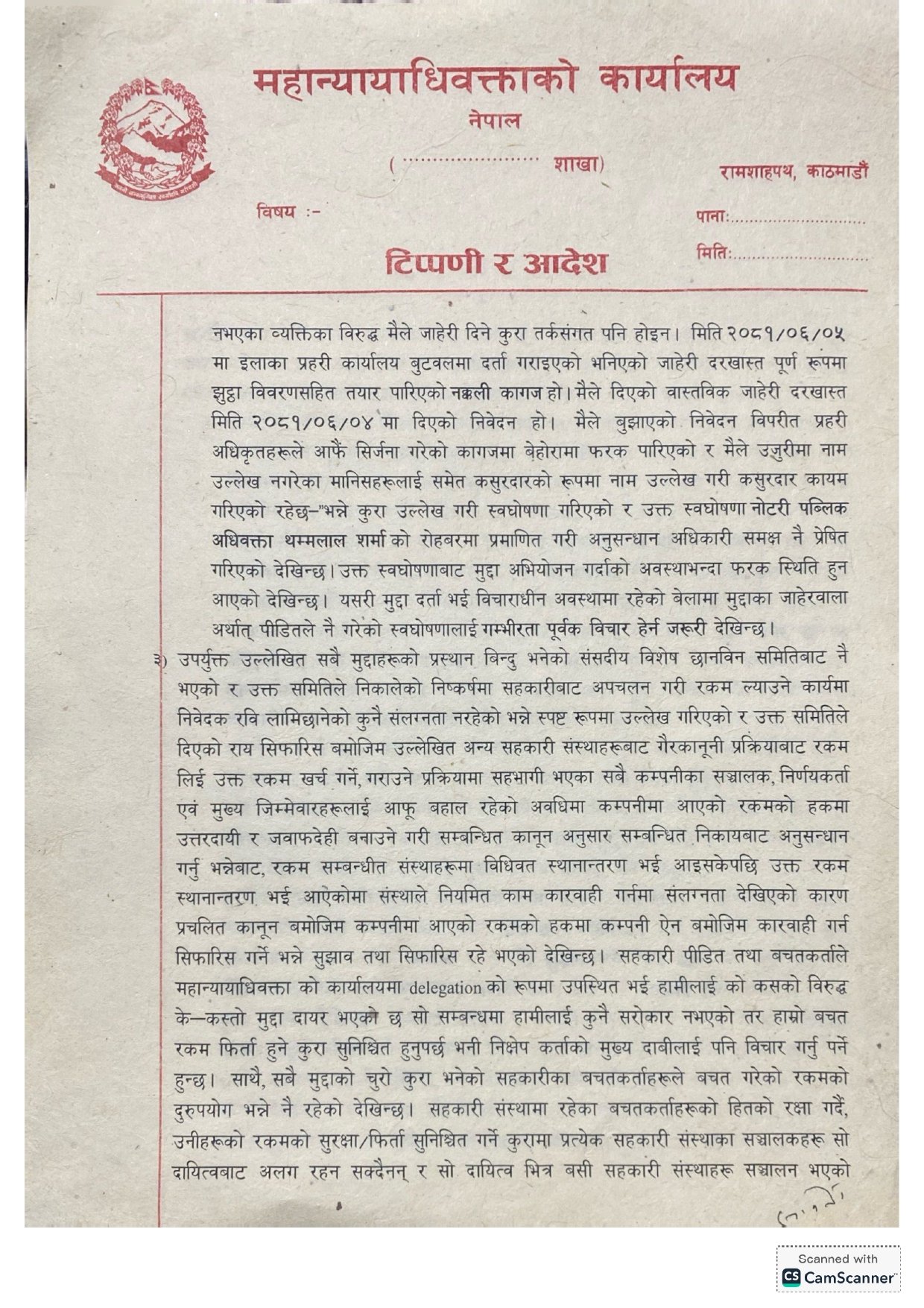 उनीमाथि सहकारी ठगीसम्बन्धी मुद्दा भने यथावत् रहने महान्यायाधिवक्ता कार्यालयले जनाएको छ ।