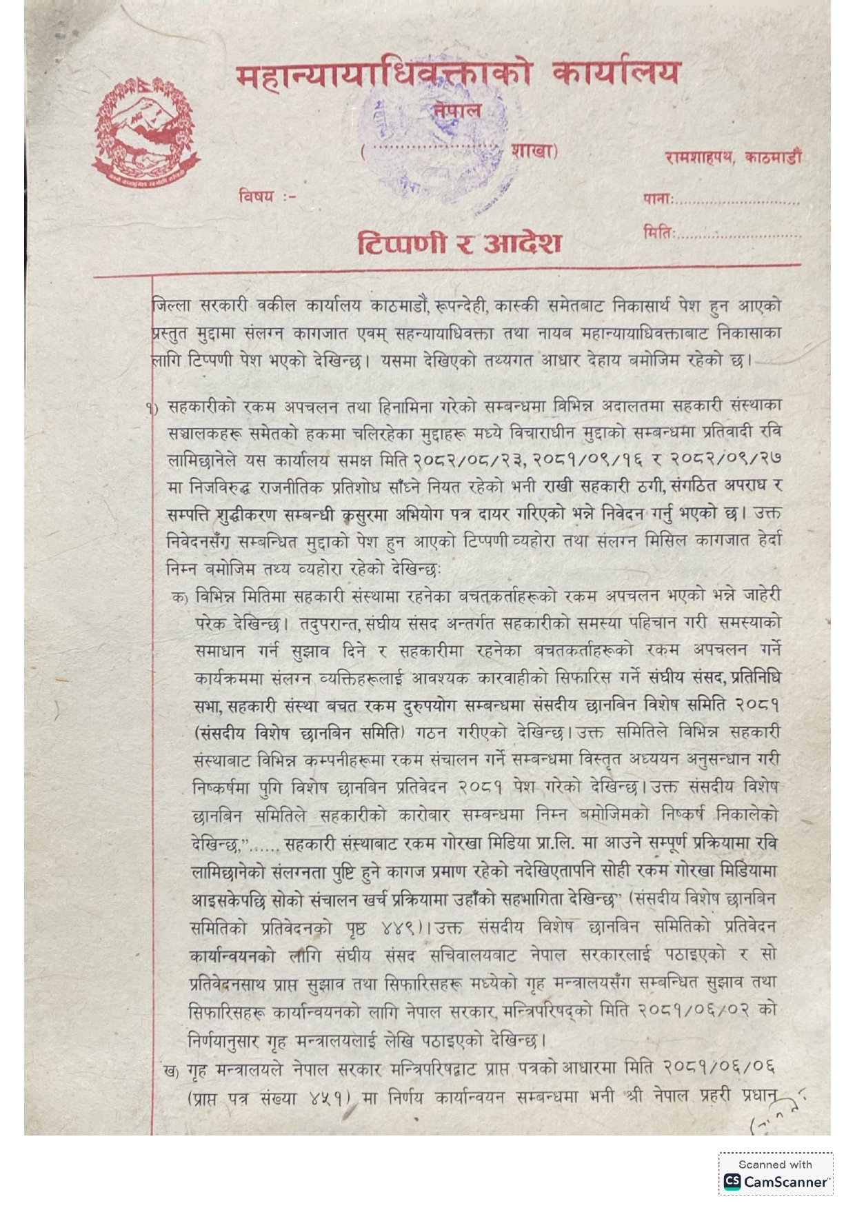 महान्यायाधिवक्ता यो निर्णयसँगै सम्बन्धित जिल्ला सरकारी वकिल कार्यालयले लामिछानेविरुद्धको मुद्दा फिर्ता लिन सक्नेछन् ।
