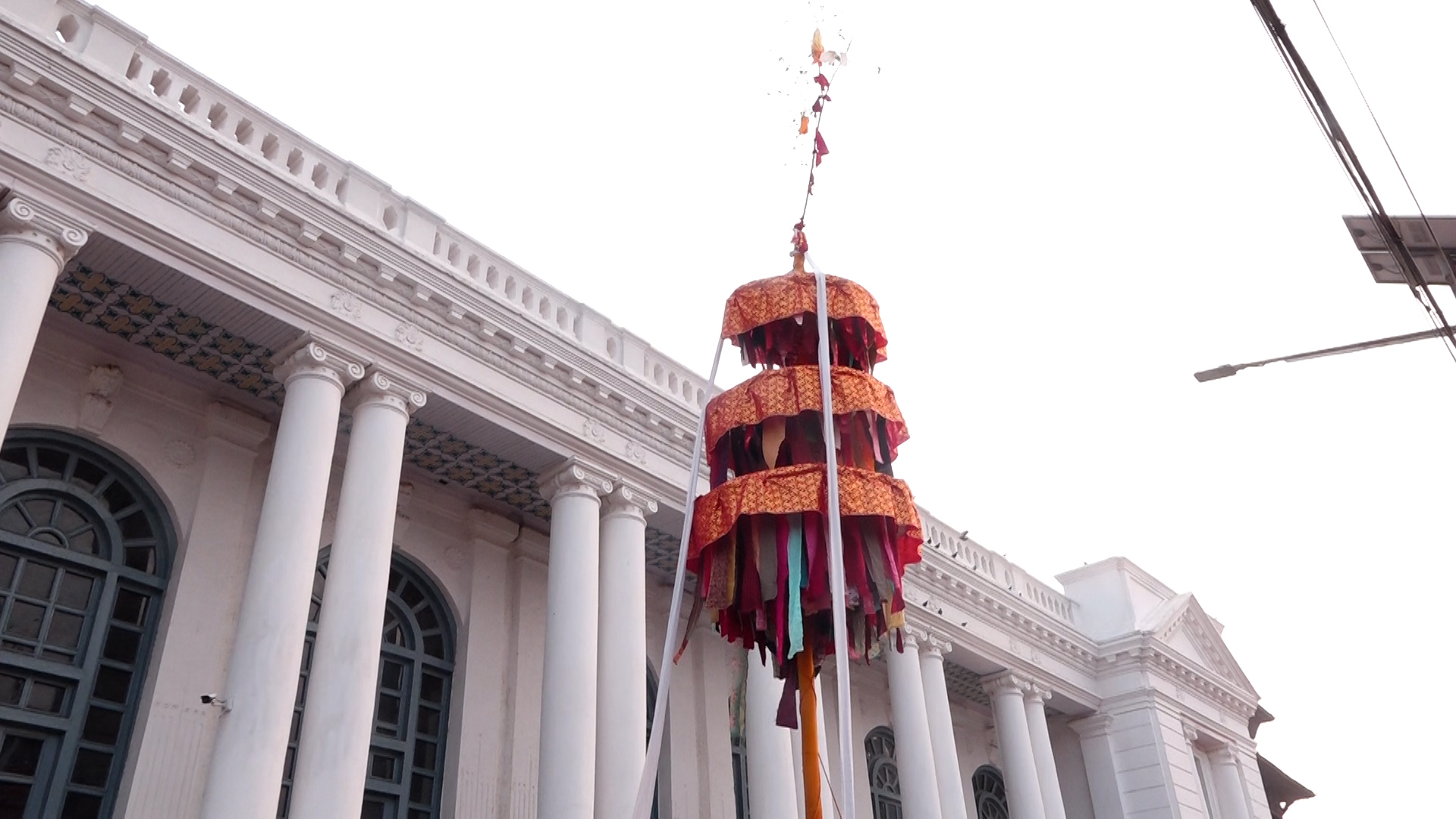 आज बिहान ७ः१३ बजेको शुभसाइत पारेर बाजागाजासहित रंगीचंगी ध्वजा र पताकाले सिँगारिएर तीन छत्रे होलीको चीर ठड्याएका हुन् । फागुन शुक्ल अष्टमीदेखि फागुन शुक्ल पूर्णिमासम्म होली पर्व मनाउने गरिन्छ ।