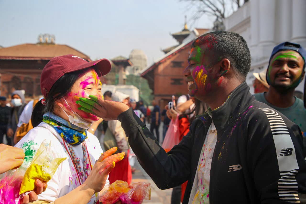 काठमाडौं । विगत वर्ष झैं वसन्तपुरमा होलीको हर्षोल्लास छाएको छ । विशेषगरी युवायुवतीले रौनक थपेका छन् । नेपाल घुम्न आएका विदेशी नागरिक पनि होलीको खुसीमा सँगसँगै रमेका छन् ।